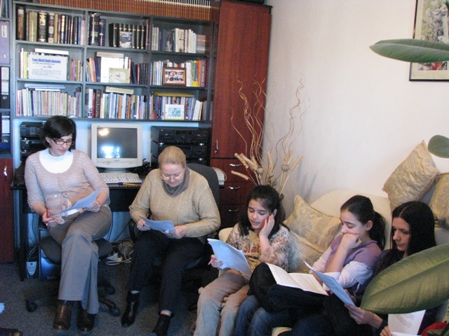 In data de 22 ianuarie 2011, am avut intalnirea cu actorii implicati in proiectul "Aventuri in lumea Bibliei". In ciuda vremii nefavorabile (ninsoare si frig) a fost o prezenta peste asteptari: 62 de persoane in afara de colectivul TWR Romania. S-a prezentat proiectul si motivele care au dus la realizarea acestuia. I-am rugat pe actori sa se prezinte si sa spuna personajul biblic preferat. A fost prezentata echipa de baza a proiectului si personajele principale. Au vorbit: Peter Kolarovsky - Directorul TWR pentru Europa centrala si de est, Ileana Cernat, Dana Mercioniu si Nicolae Vandici. In cadrul aceleiasi intalniri s-a ascultat un episod din Universul Copilariei, dupa care cei prezenti si-au spus parerea despre fragmentul ascultat. Toate discutiile si propunerile au fost foarte constructive si incurajatoare, vizand o calitate cat mai buna a emisiunilor ce vor fi realizate. S-a stabilit ca prima inregistrare sa fie pe 26 ianuarie 2011.